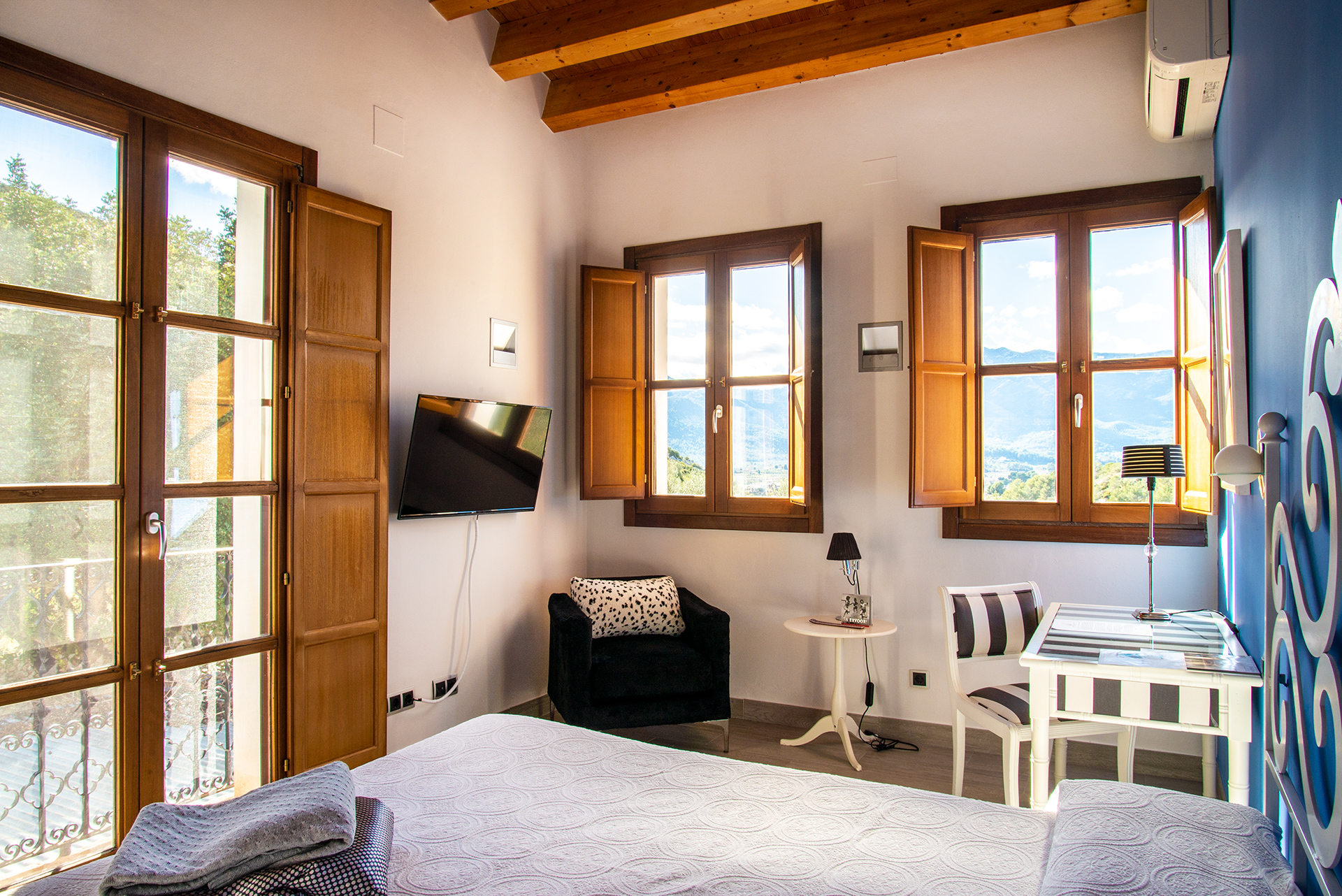 De kamers zijn uitgerust met een patio of balkon, WiFi, ChromeCast met scherm, vloerverwarming en airconditioning, en een eigen badkamer. Ze bieden allemaal veel comfort en ruimte. In twee van onze kamers, Dosel en Violeta, staan we onder bepaalde voorwaarden huisdieren toe.